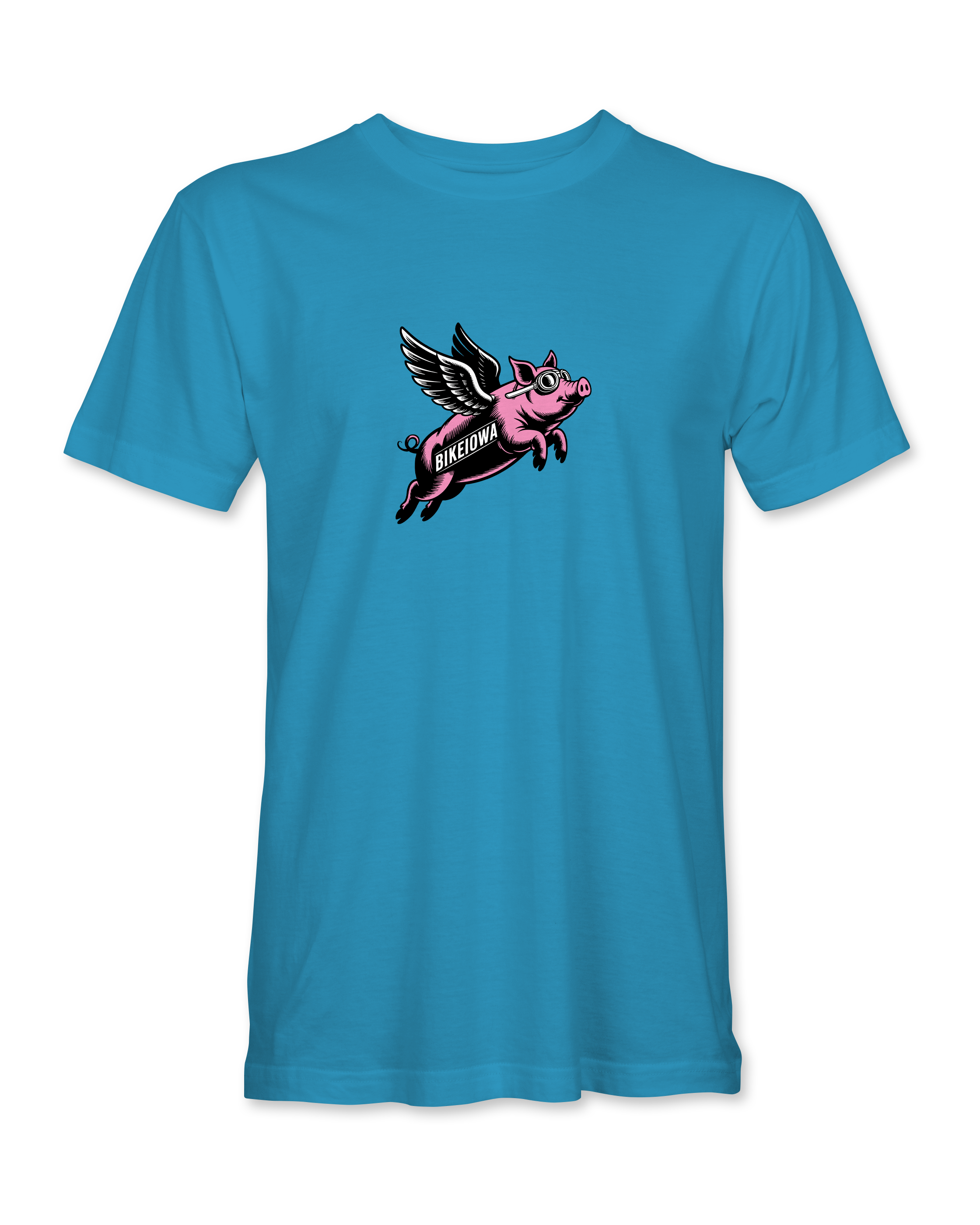 BIKEIOWA has been sneaking pigs into designs for years — sometimes hidden, sometimes front and center. This one? All in. Our Flying Pig is a fun, quirky twist on the classic “when pigs fly” saying… only this pig actually does fly, pedals spinning and smile wide.