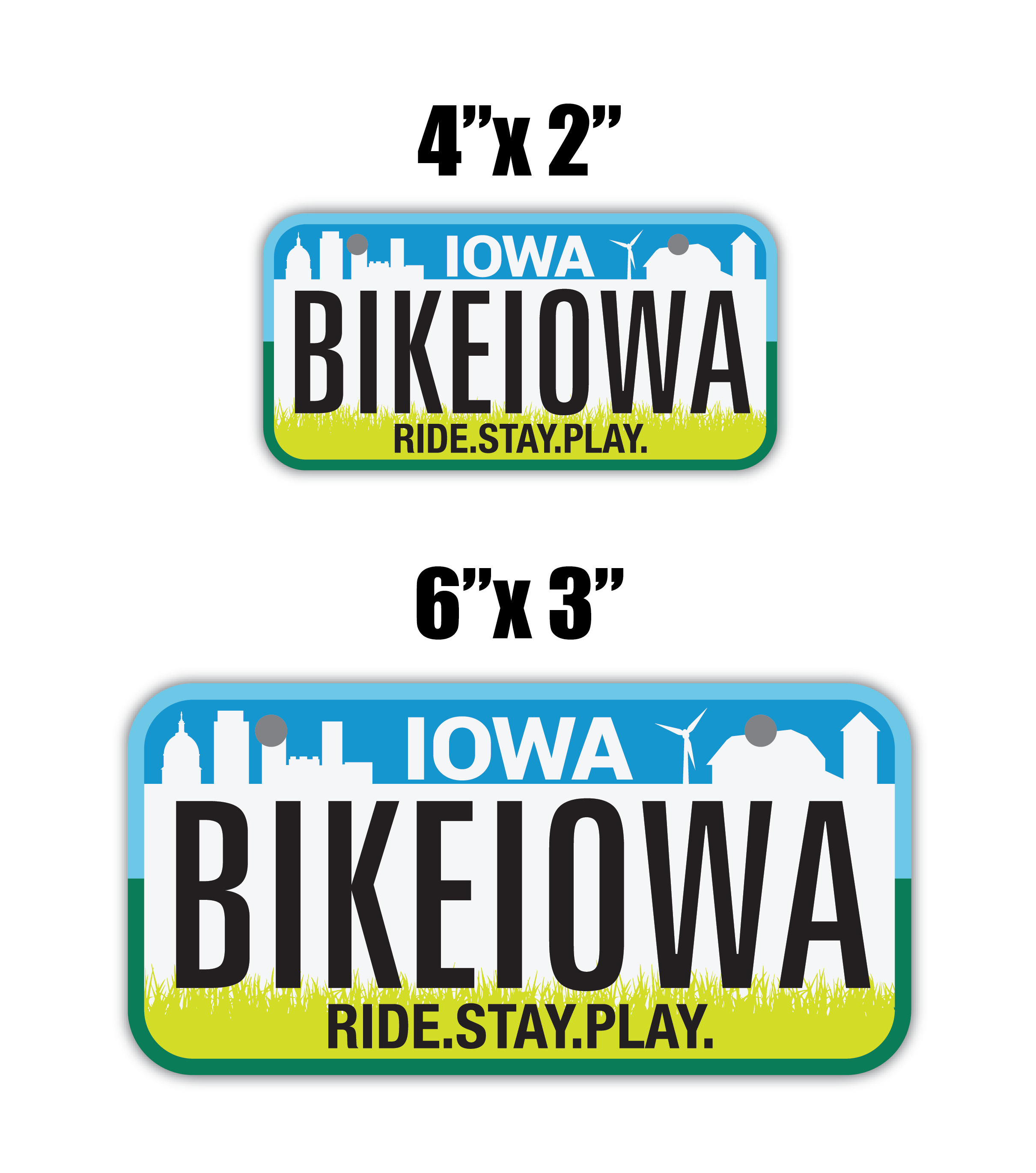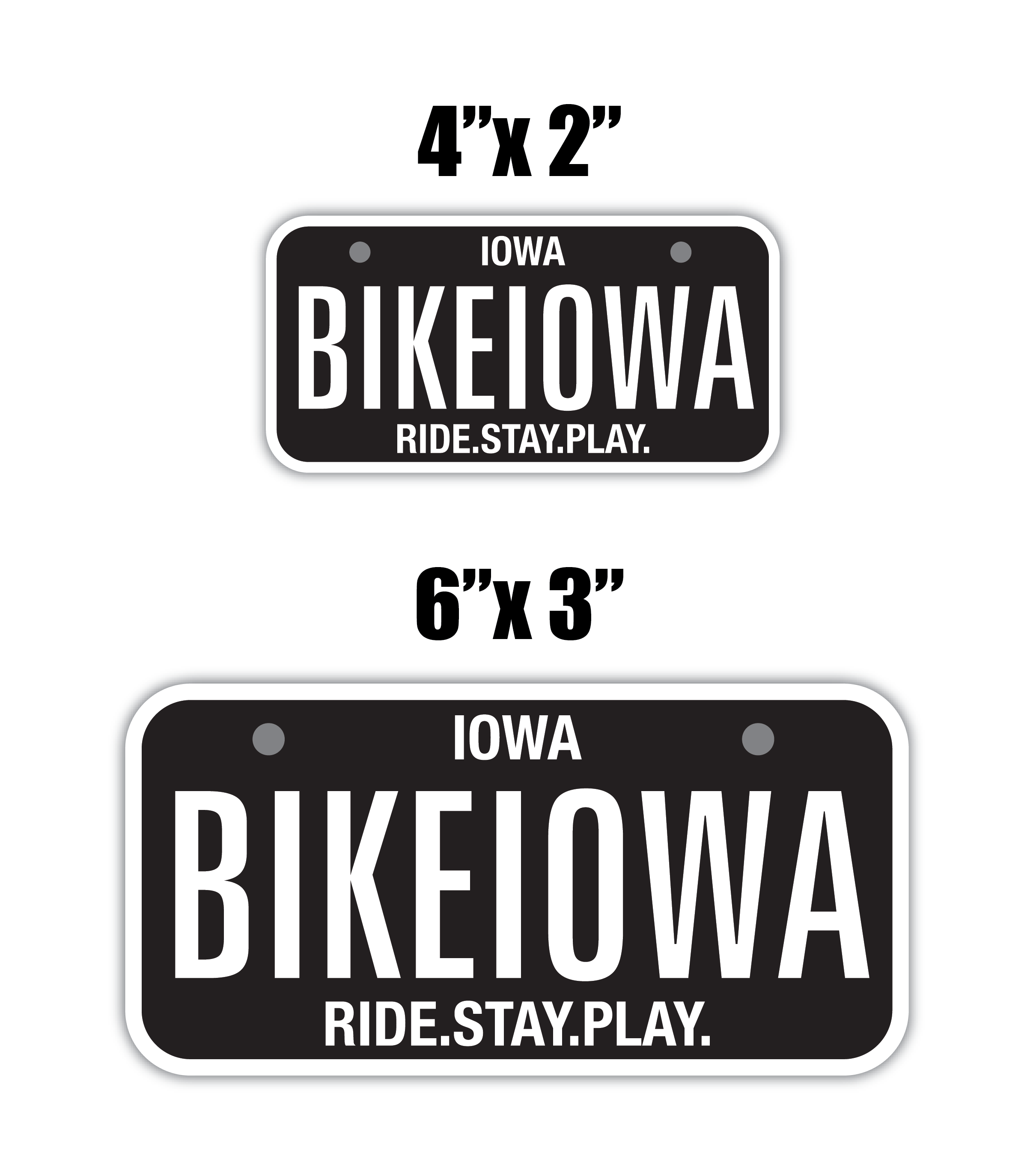 Show your Iowa cycling pride anywhere you go. These miniature BIKEIOWA license plates are perfect for your bike, bag, trailer, office, or gear wall. A perfect gift or stocking stuffer too! Durable, sleek, and easy to mount - a small reminder to always RIDE. STAY. PLAY.