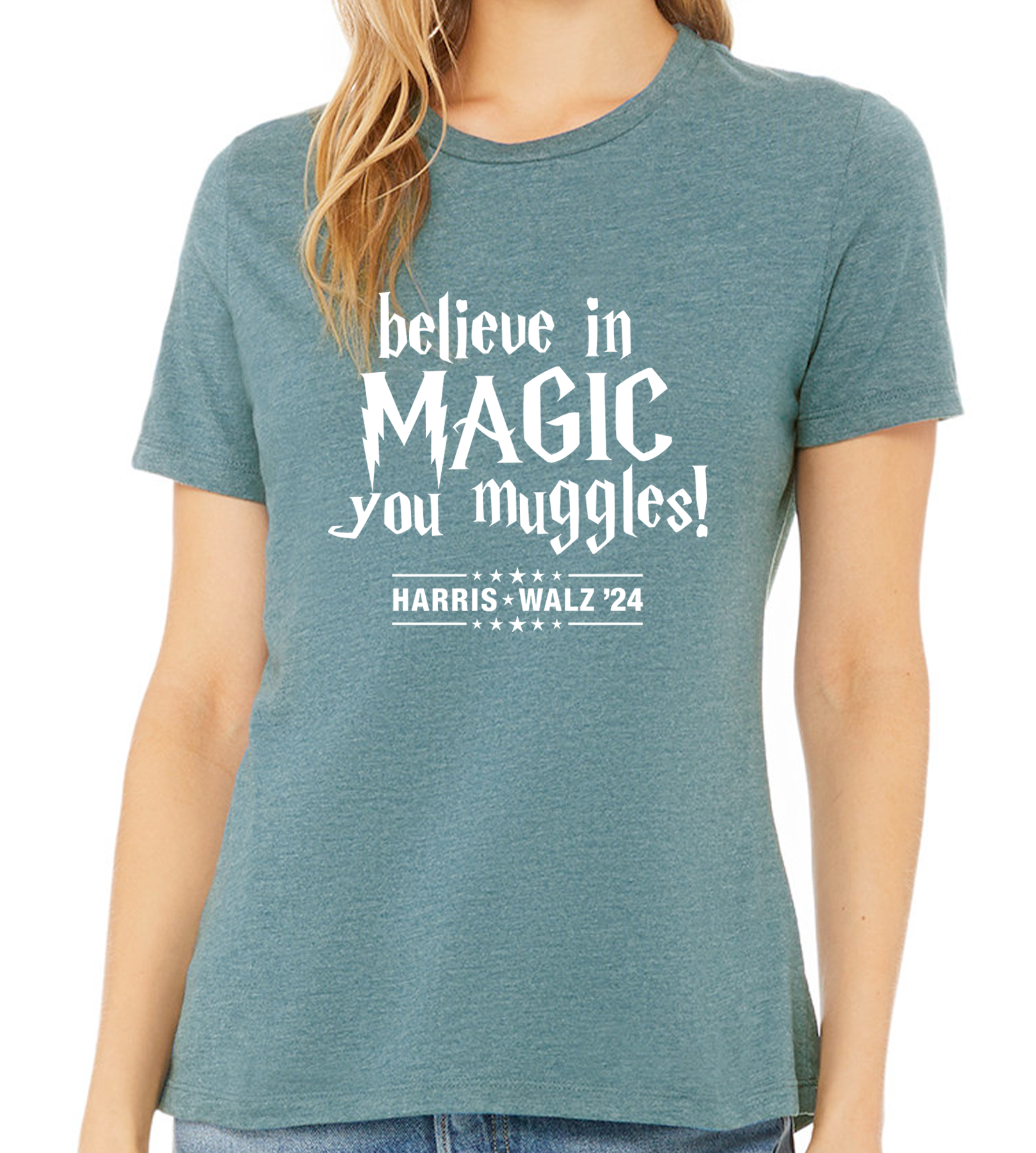 HARRIS / WALZ "BELIEVE IN MAGIC YOU MUGGLES" LADIES RELAXED TEE