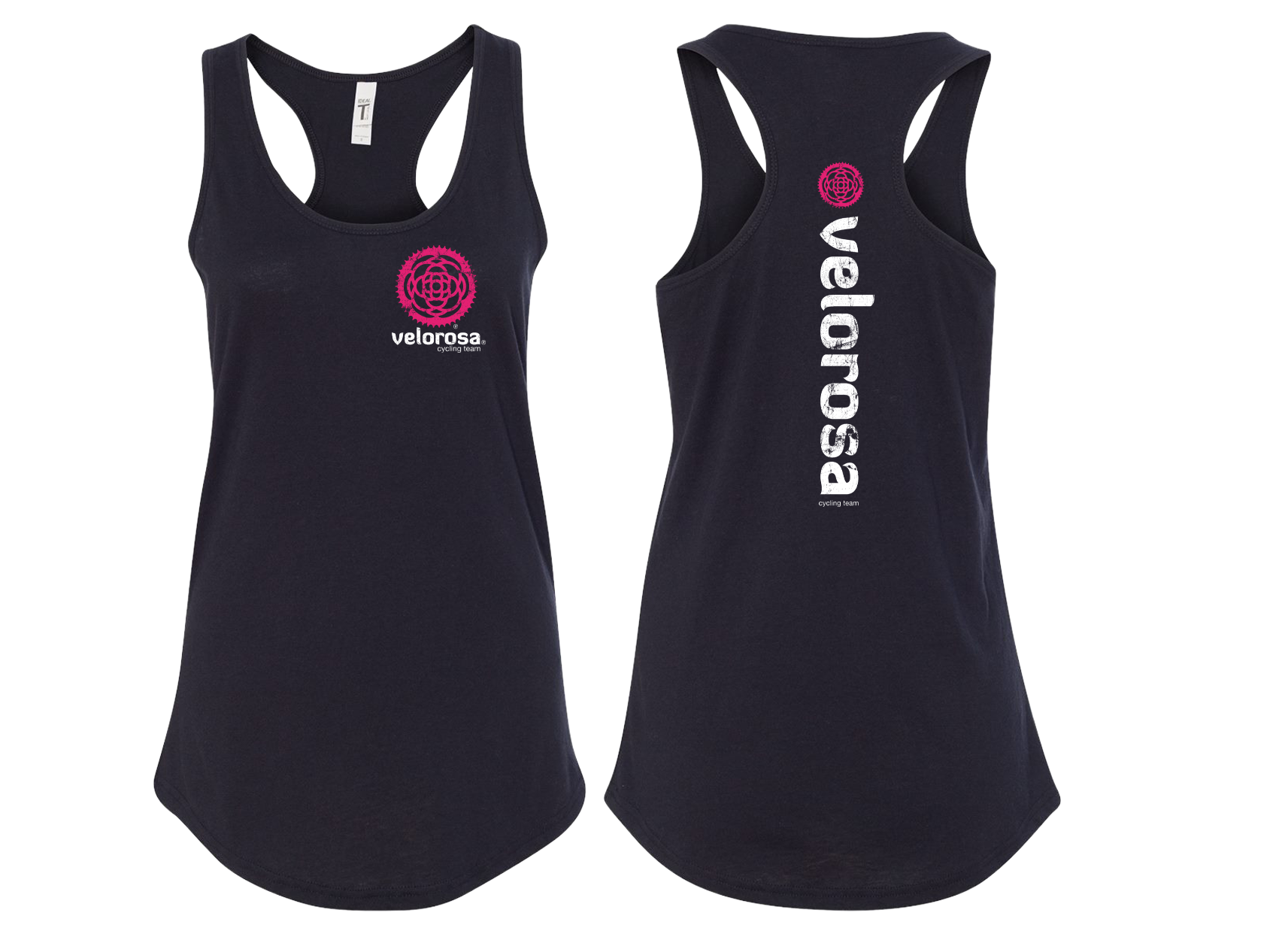 VeloRosa 2C Distressed Left Chest, Center Back / Next Level - Women's Ideal Racerback Tank